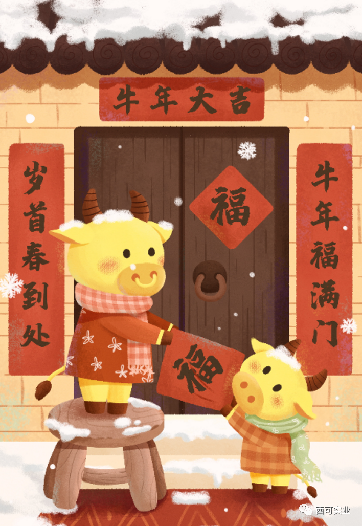 福鼠運財辭舊歲,牛轉乾坤迎新春新的一年、新的開始,西可實業全體家人們將以更飽滿的工作激情、昂揚的奮斗姿態、堅定信心、錨定目標,譜寫西可實業更加美好的明天。