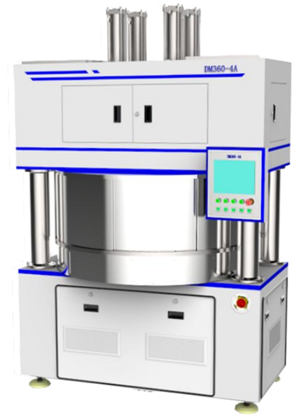 本機主要用于砷化鎵、硅片、碳化硅、藍寶石片、鍺片、鈮酸鋰、玻璃等硬 脆材料,平行平面的單面高精度、高效率拋光。 該機采用觸摸界面及 PLC 控制。為用戶提供開放式的圖形操控界面,充分發 揮機械硬件性能;該機主傳動具有傳動鏈短、穩定可靠等特點;四個 PP 頭壓力 單獨控制,單獨驅動,下盤采用循化冷卻水強制冷卻,溫度控制精確。