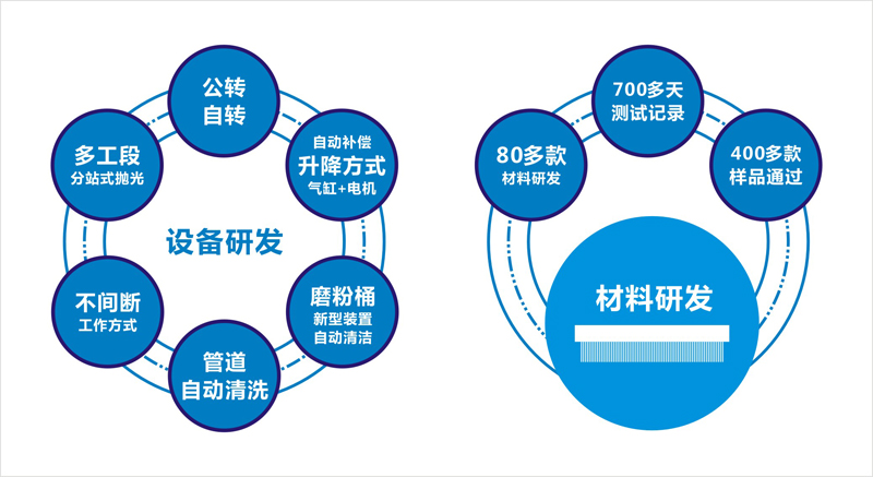 經過80多款材料研發及700多天的測試,產品是現有普通材料下絲量的1.5倍,使用壽命增多3倍以上,最大化提升拋光效果,縮短拋光時間,減少人工成本的優秀成果,成為全場新亮點。