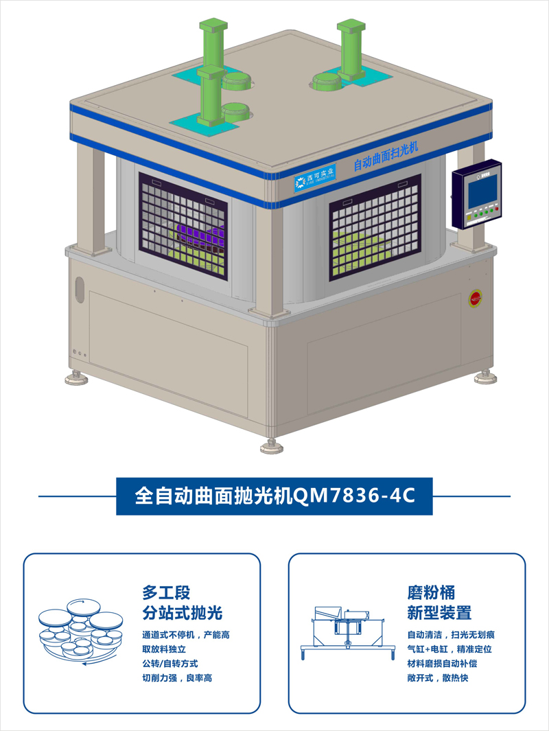 西可實業堅持走自主研發路線,自創建以來,擁有20余項發明和實用新型專利,技術研發包括設備結構、材料以及設備與材料搭配應用的整體方案。本次推出了新款設備,采用多工段、不停機,可最大化提升掃光效果、降低人力成本并提高生產效率。